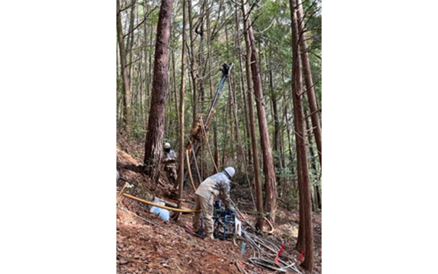樹木を極力伐採せず木々の間で削孔出来るので自然環境を破壊しません。