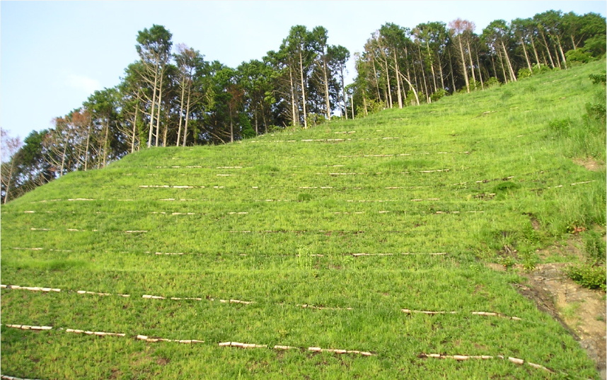 - ● 比較的小規模な崩壊等の補強工としての法面保護工(モルタル吹付や吹付枠工等を用いない全面緑化を目的とした法面保護工)